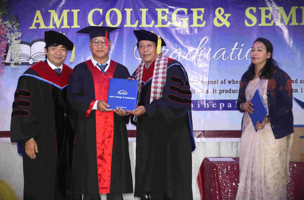 Rev. Dr. Shyam Shrestha, Rev. Dr. Timothy Pun, Ganga Pakhrin, and Minu Shrestha at the graduation ceremony- Hetauda, Nepal.